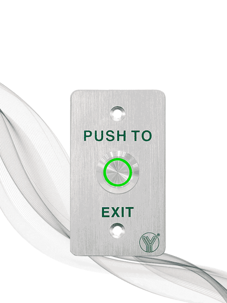 El botón de liberación liberador de puerta modelo YWP880BLED es de acero inoxidable con LED de tamaño 86Lx50Wx12H(mm), diseño a prueba de agua IP-68, a prueba de polvo, estándar estadounidense, que es el más común y el más utilizado en los sistemas de control de acceso.