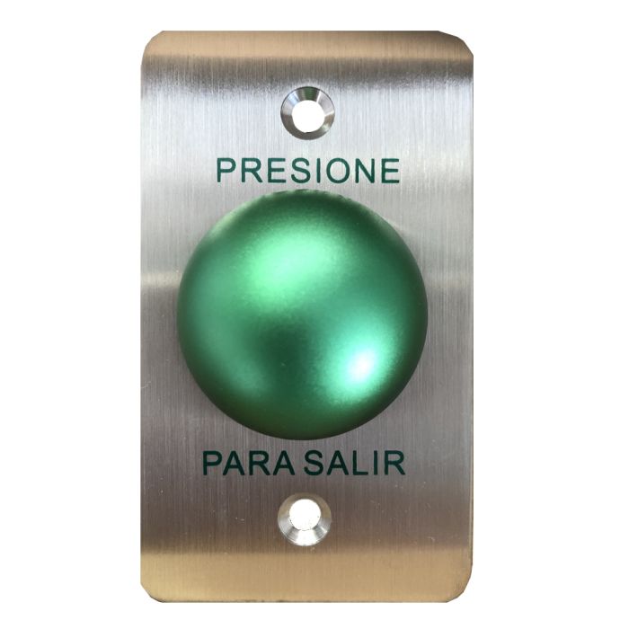 YLI PBK818A - Botón de salida en acero inoxidable salidas NO y NC en acabado color verde compatible con caja para instalacion clave 76017