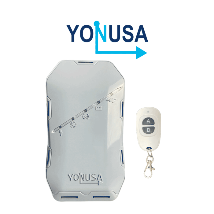 YONUSA HS - Energizador de nueva generación para solución de cerco eléctrico. Cubre 500 metros lineales o 100 metros en 5 lineas. Incluye control remoto (encendido/apagado) Compatible con modulo WiFi