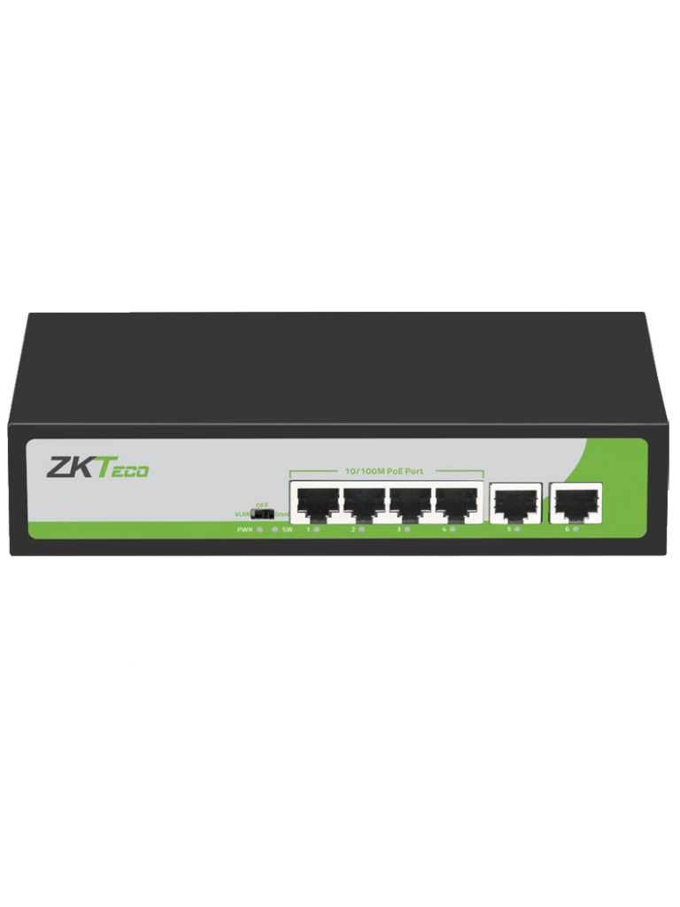 ZKTECO PE04255C -Switch de 4 Puertos Fast Ethernet PoE AF - AT / 2 Puertos RJ45 10/100 / Soporta hasta 250 mts sobre UTP CAT 6 / Protección Contra Descargas / NO Administrable