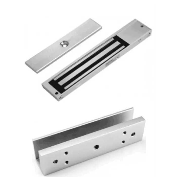 ZKTECO LM200LEDSU - Paquete de contrachapa magnética de 200 Kg a 12 VDC con señal NC que incluye soporte en U para colocación en puertas de vidrio