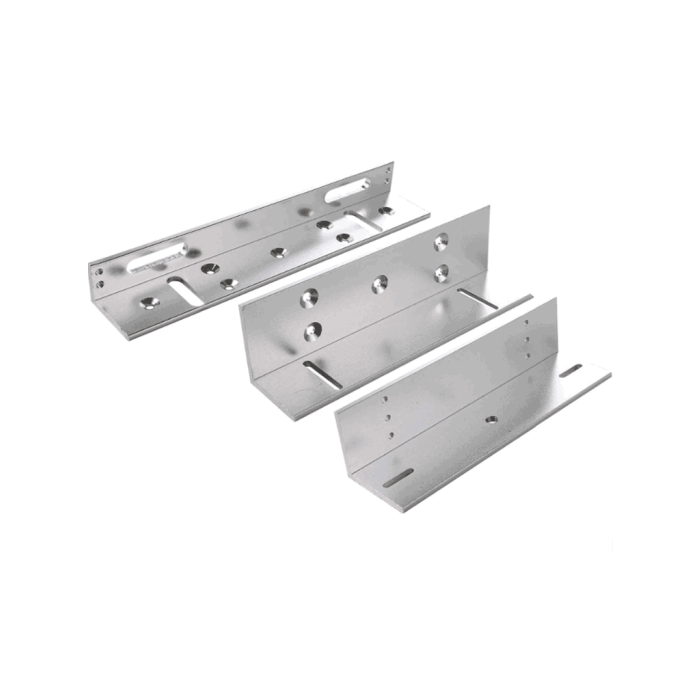El soporte "L" se usa para montar la cerradura magnética sobre la puerta y el soporte "Z" se une a la puerta para alinear la placa de armadura con el imán.