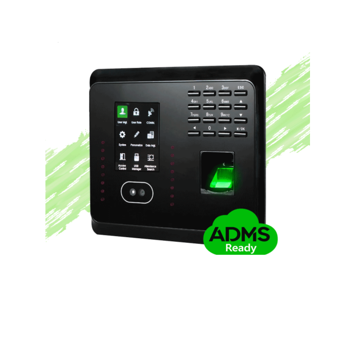 El control de asistencia y acceso básico MB360 es un innovador dispositivo para la gestión de tiempo y asistencia de los empleados, soporta métodos de verificación por medio de rostro, huella, tarjeta, contraseña y combinaciones entre los anteriores además de funciones básicas de Control de Acceso.