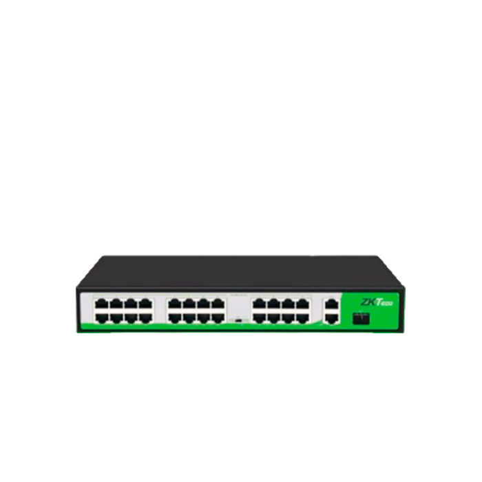 ZKTECO PE242300C - Switch de 24 Puertos Fast Ethernet PoE AF - AT / 2 Puertos RJ45 10/100/1000M + 1 Puerto SFP 1G / Soporta hasta 250 mts sobre UTP CAT 6 / Autoadaptación MDI - MDIX / Protección Contra Descargas
