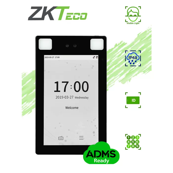 ZKTECO ProFace X- Terminal de Control de Acceso con Reconocimiento Facial/ para Exterior de -30° hasta 60°/ 30,000 Rostros/ 50,000 Tarjetas RFID 125 Khz/ 8 Pulgadas/ IP68/ IK04/ Serie Visible Light