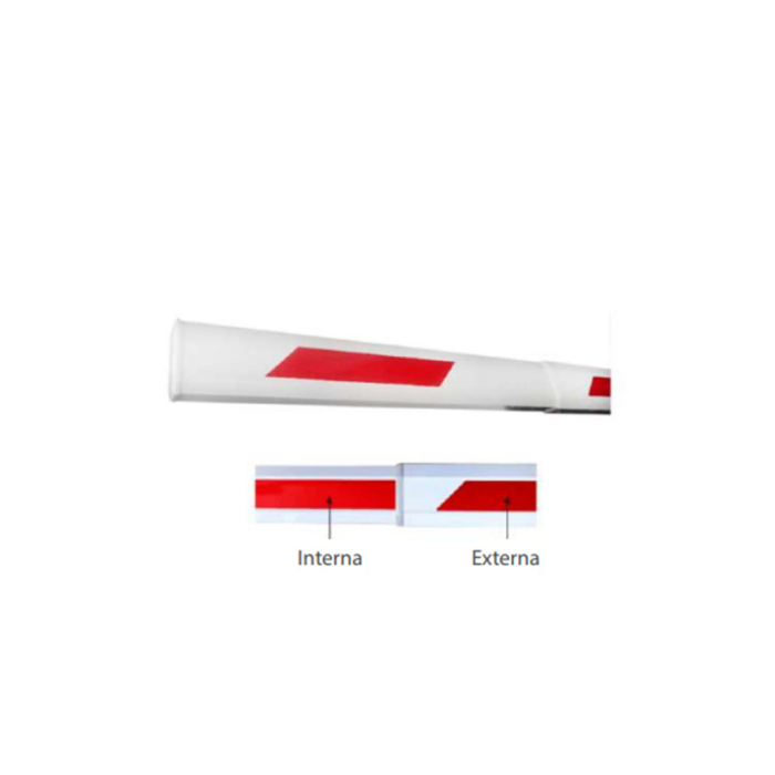 El accesorio es un brazo telescópico, con una dimensión de 2.60 mts sin estirar y 4.5mts ya estirado, está hecho de aleación de aluminio de alta resistencia, incorpora una película reflectante que tiene la función de advertencia.