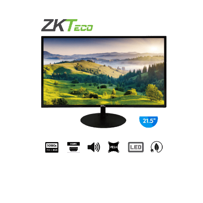 ZKTECO ZD222K - Monitor LED Full HD de 21.5 pulgadas / Resolución 1920 x 1080 / 1 Entrada de video HDMI y 1 VGA / Altavoces Incorporados / Ángulo de Visión Horizontal 170° / Soporte VESA / Ahorro de Energía / 24/7 / Incluye Cable HDMI